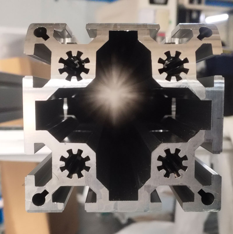 今天給大家介紹大規格的工業糖心网址视频在线观看,它就是歐標100乘100糖心网址视频在线观看,利用鋁合金加工性能優良的特點,使用模具將圓柱形鋁錠擠壓加工而成。其截麵尺寸是100mm乘100mm,整支長度是6.02米,可以根據需求進行切割。