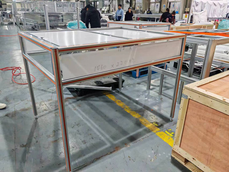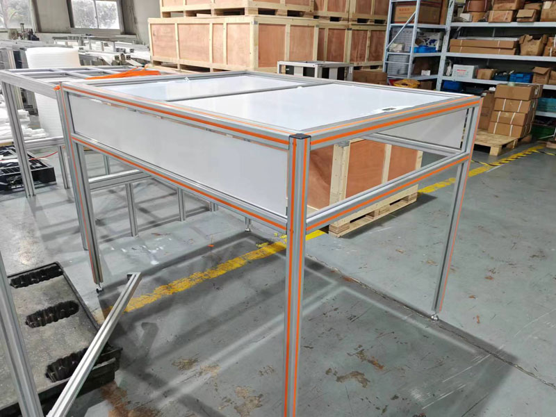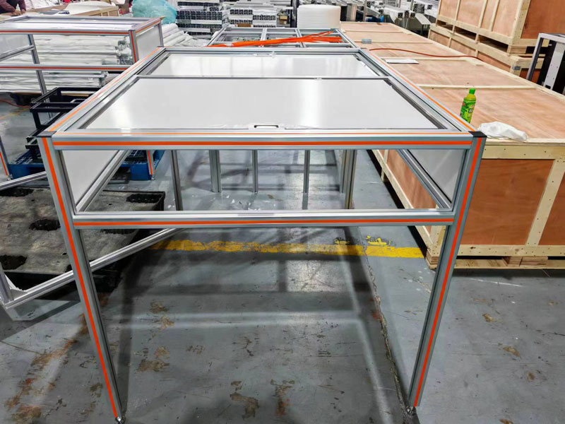 防塵罩頂部是滑動門,使用了1530連接塊導軌,四個立柱安裝了蹄腳。